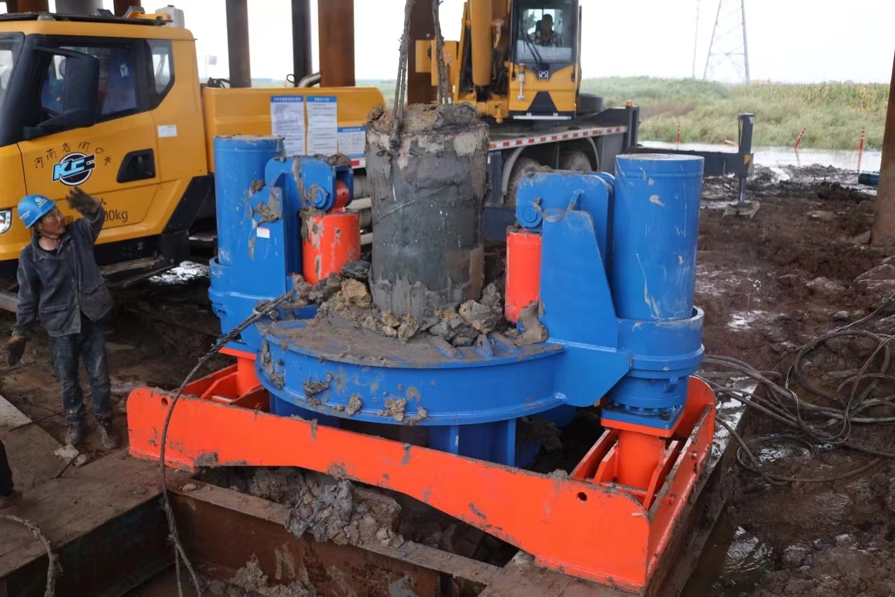 這么多深埋地下的圓樁想要整體拔除,非人力所能及,北奕液壓拔管機當義不容辭。